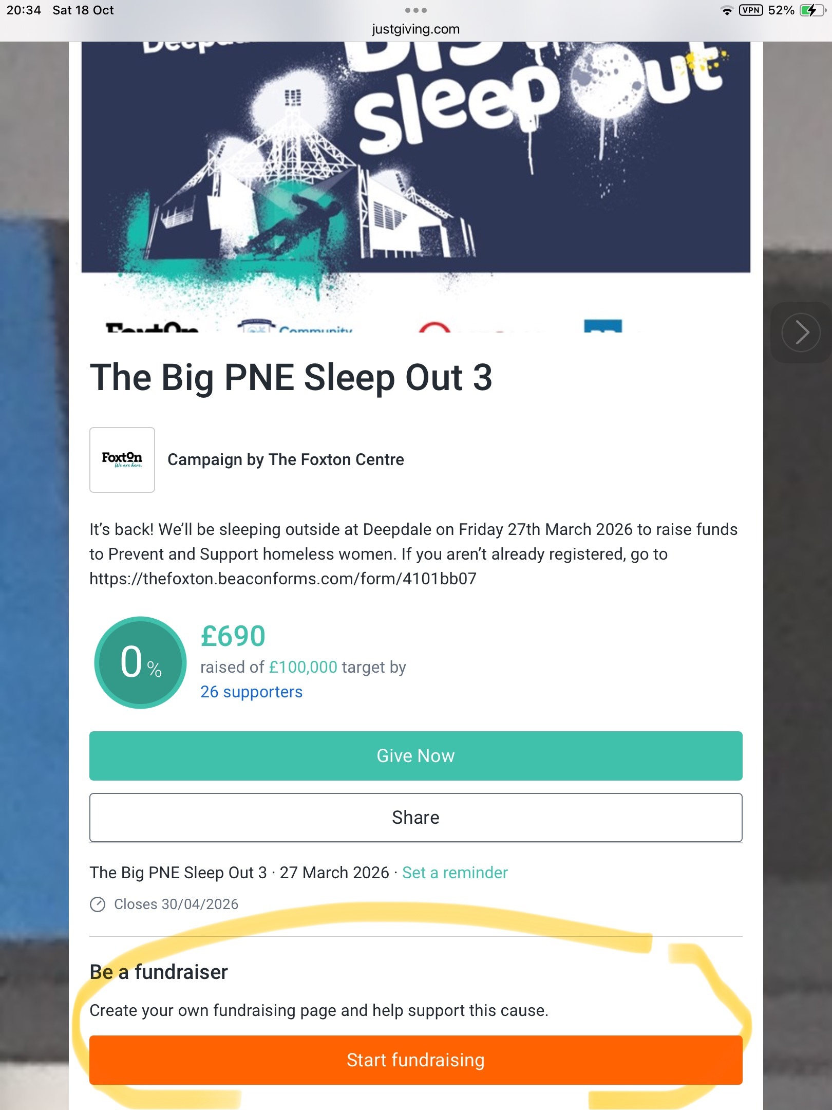 This is the guidance by which an organisation can register an event and create a fundraising page for their ‘team’ linked to the Big PNE Sleep Out. For details of the registration process for the main event, see https://thefoxton.org/the-big-pne-sleep-out-is-back