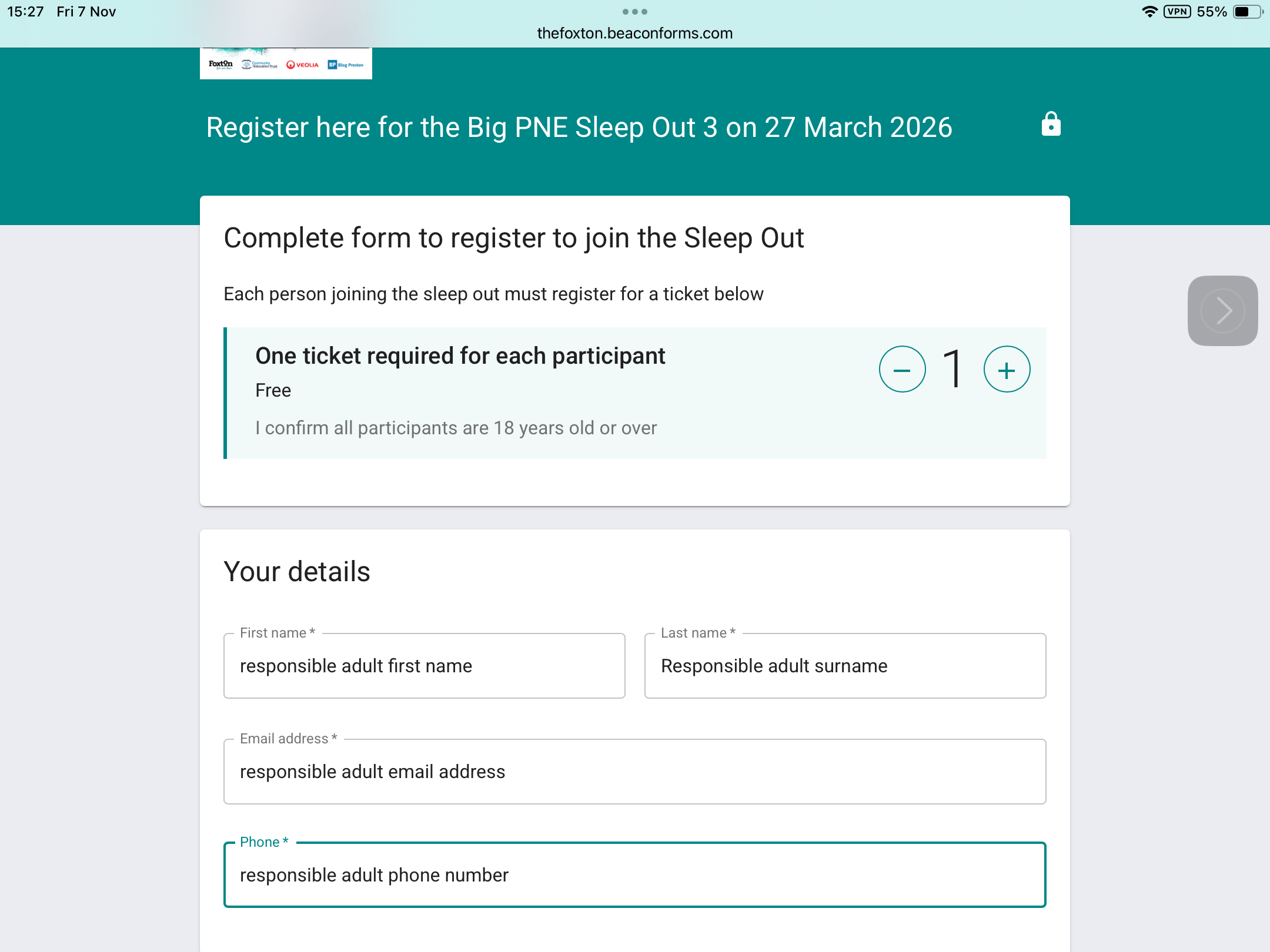 A responsible adult should register for the Sleep Out in the normal way using the link: https://thefoxton.beaconforms.com/form/4101bb07